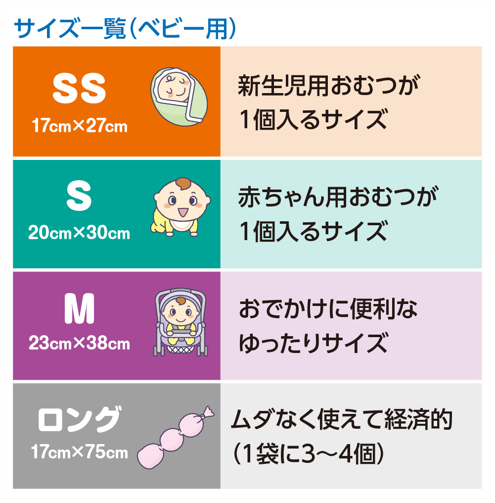 ベビー用 ロング540円 / 30枚18円250円1回あたり 6円(送料別)