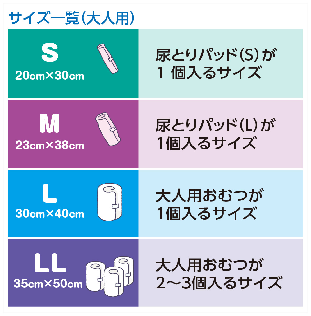 大人LLサイズの容量は大人用おむつ2~3枚ということなので、子どもサイズのおむつで3回分以上使用すれば、単価はもっと下がります。