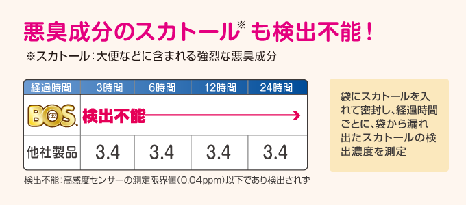 うんちの悪臭成分が、なんと24時間後でも検出不能。