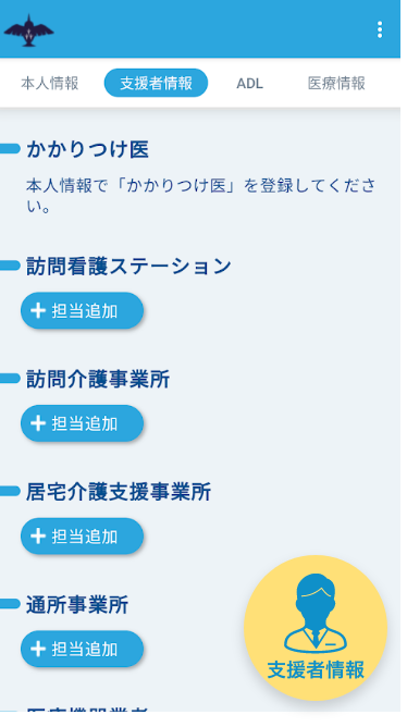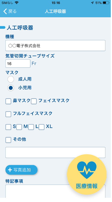 医療的ケア児や難病、事故などによって医療機器やケアが必要な方など、災害時に支援が必要なすべての方と家族が、支援者と一緒に、自身の心身状態や必要な医療衛生材料などをアプリに保存しておくことで、有事の際にDMATや医療従事者に情報を開示して、迅速な治療や看護、搬送に役立てることができます。
